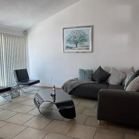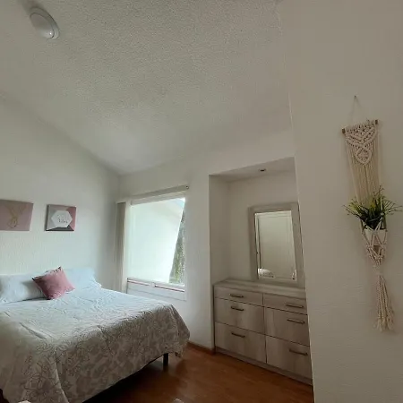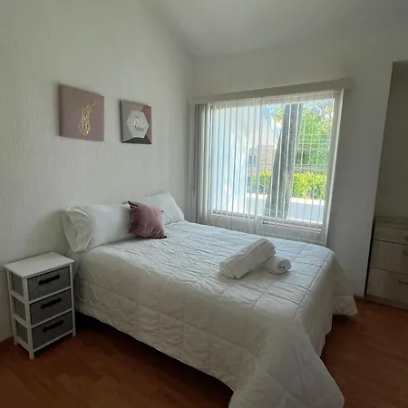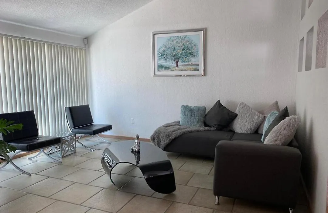 4の寝室のケレタロ La Casa Blanca Qroヴィラは,アラメダ ヒダルゴ公園から徒歩10分以下です. 別荘には4のバスル-ムと器具でいっぱいの台所が付いています.